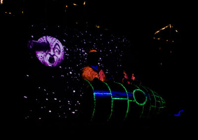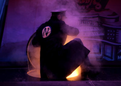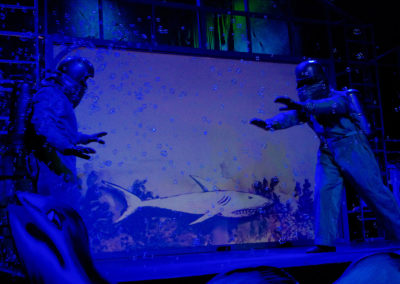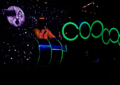 Nous allons raconter les plus beaux voyages imaginés par Jules Verne (1828-1905) à travers le regard de Georges Méliès, premier magicien du cinéma (1861-1938). Nous ferons un voyage dans le temps pour nous retrouver sur le plateau de tournage d’un studio de cinéma du début du 20ème siècle où Méliès en personne tournera avec son équipe, quatre courts métrages, devant nos yeux émerveillés. Inventions, trucages, magie, illusions, ombres et marionnettes permettront aux comédiens d’illustrer ces histoires. Les romans de Jules Verne et les films de Méliès sont un enchantement pour tous les âges. Plus que des pionniers, ils demeurent les maîtres absolus de la fantaisie et du rêve. « Il faut rire de tout. C’est extrêmement important. C’est la seule façon humaine de friser la lucidité sans tomber dedans.» Pierre Desproges.